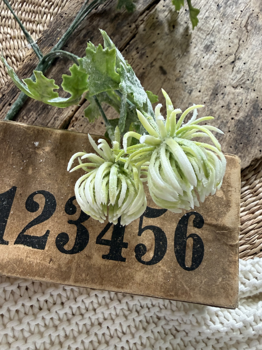 Kerti őszirózsa kiegészítő csokor forrasztott, sötétzöld szárral, hamvas bevonattal.