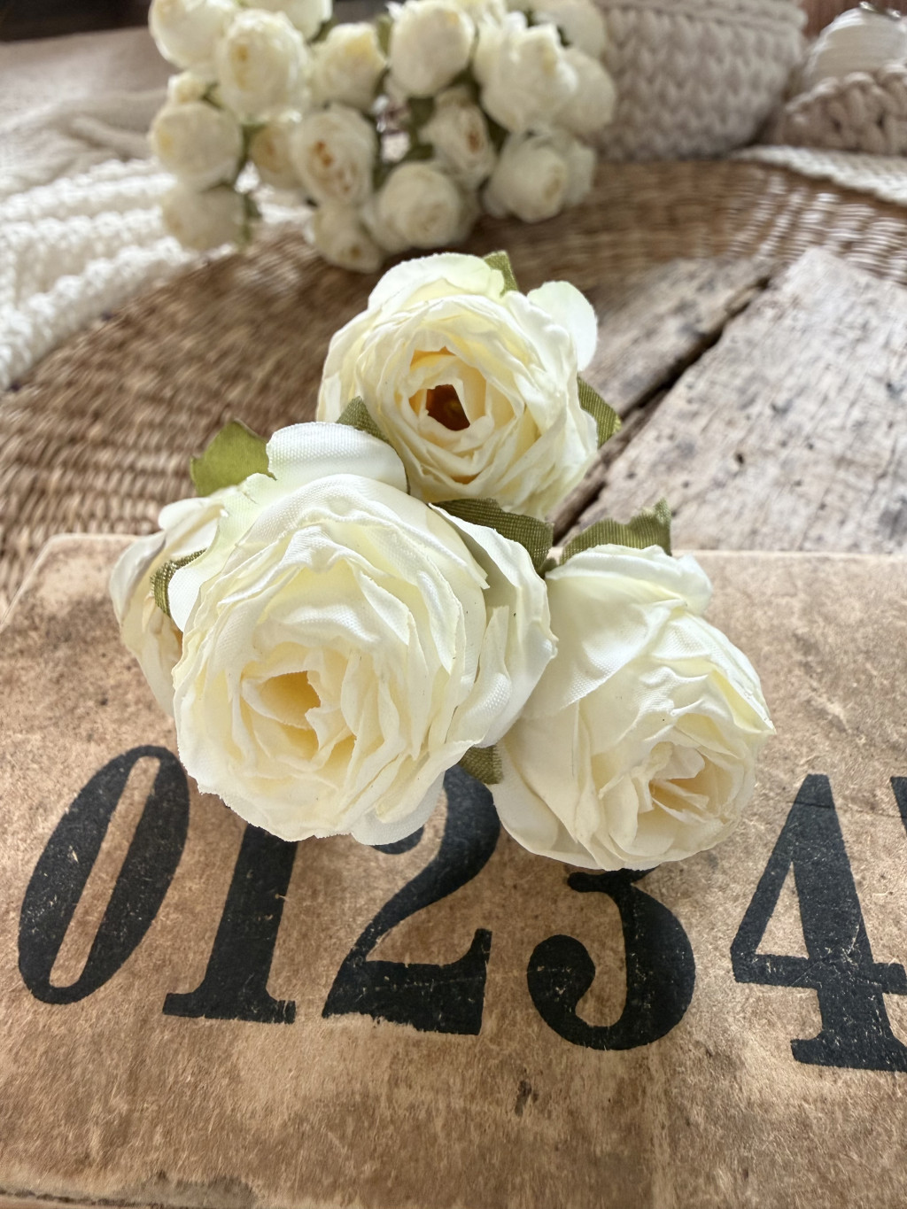 Mű szárított hatású rózsa - Vintage tört fehér 4 fej