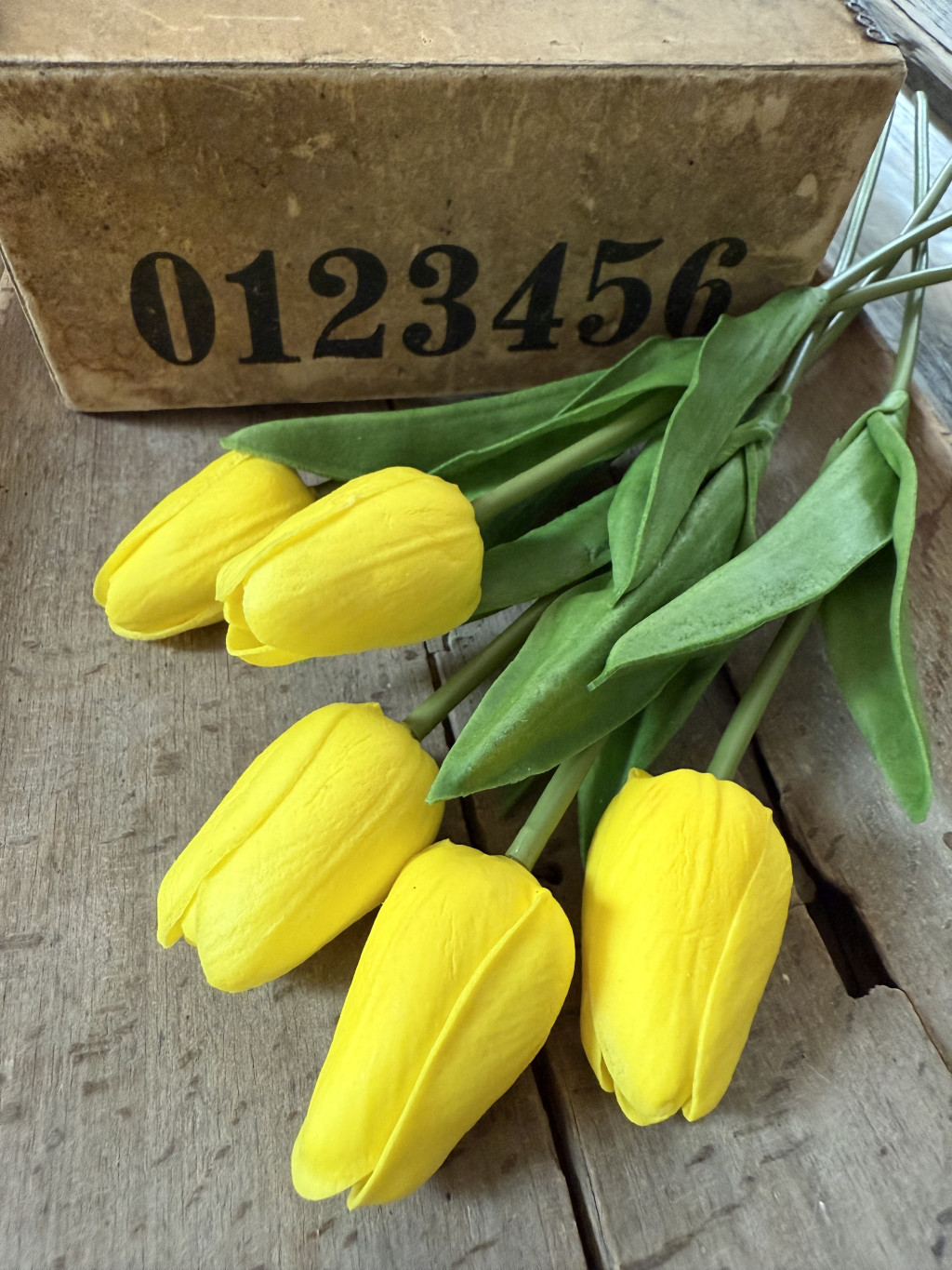 3 szál polifoam tulipán. Merevített szára gumicsőbe van burkolva,
