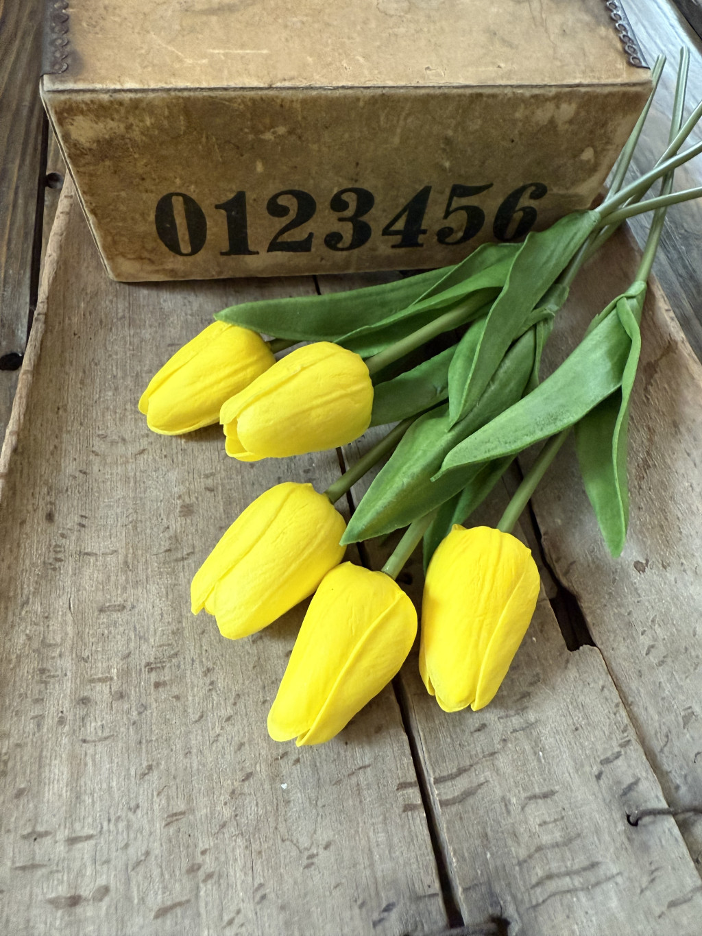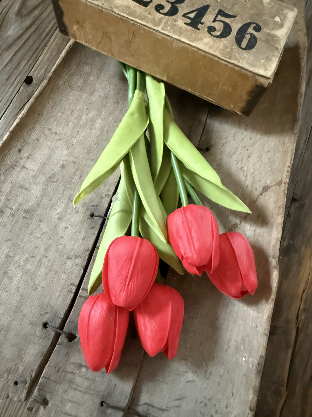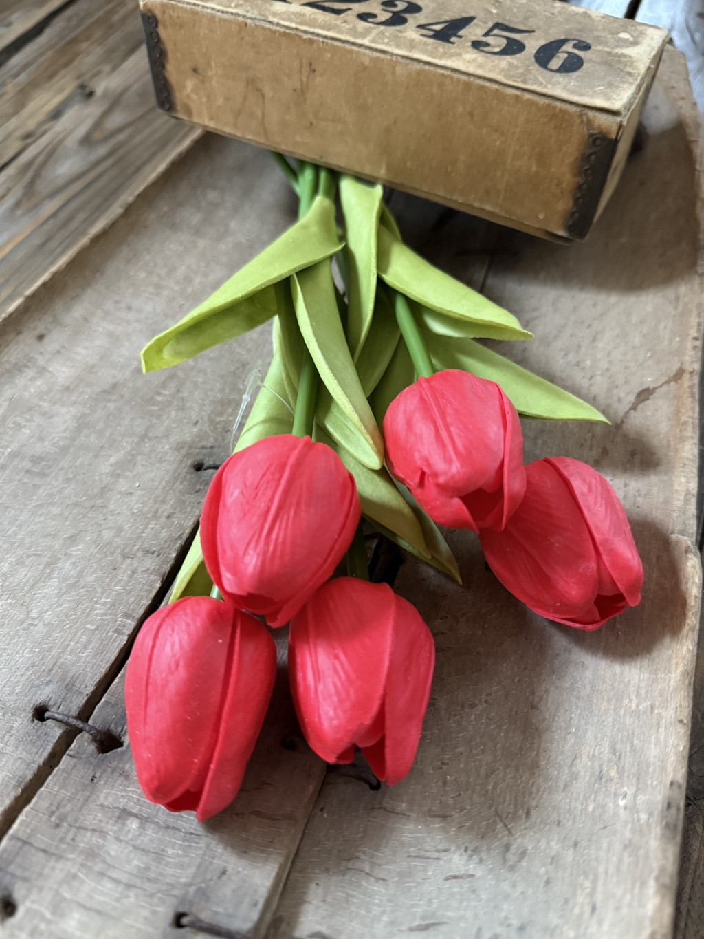 5 szál polifoam tulipán. Merevített szára gumicsőbe van burkolva,