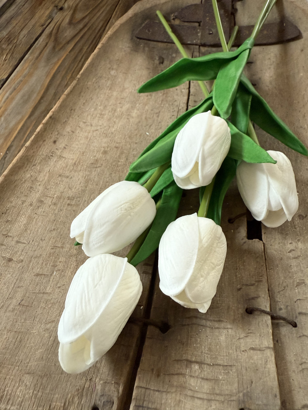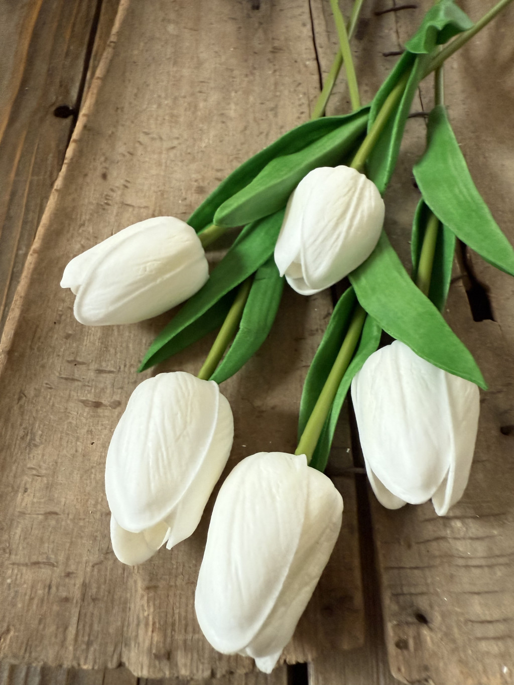 3 szál polifoam tulipán. Merevített szára gumicsőbe van burkolva,